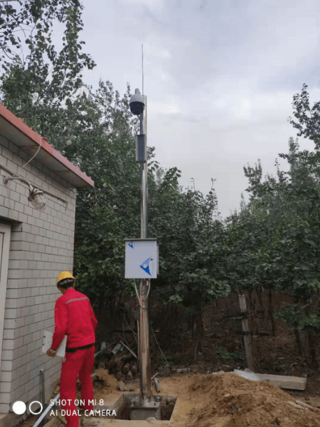 中國石油場站,壓氣站304不銹鋼監控桿施工現場,監控桿高度4.5米,材質為純304不銹鋼,壁厚4mm。